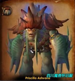 相信谁也没有想到曾经在库尔提拉斯王国呼风唤雨的普利西拉·艾什凡女勋爵如今会变成这样,在之前篡夺库尔提拉斯政权被吉安娜发现并制止之后,艾什凡女勋爵就怀恨在心。从一开始结盟海贼在到如接触艾萨拉都注定了她悲剧的命运。在加入《永恒王宫》团本套餐后艾什凡女勋爵将得到古神恩佐斯的力量进化成一只独特的海洋生物。与之前的容貌相比这简直太让玩家意外了。