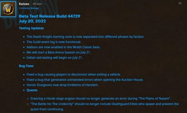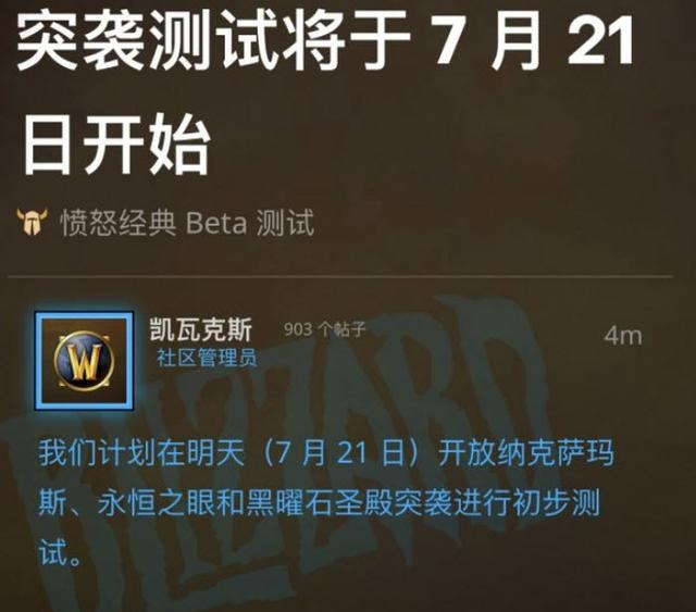 蓝贴表明,暴雪21日开启了3大团本的测试功能,玩家们能直接创建80级有一定装备的账户,进到团本进行测试。除此之外暴雪还更新了许多测试服的补丁包,全是修补以前看到的BUG,但仍然有很多问题没及时解决,许多老外反映,许多职业的BUG依然存在,例如骑士双圣印,也有战士压制技能用不上这些。可是暴雪也知道不能再拖下去了,美服键盘侠火力点很猛,今日释放这一团本测试,更像是为了能应付交差。