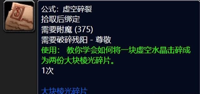 大棱光碎片是TBC怀旧服装中最昂贵的附魔材料。单价甚至超过了虚空水晶。如果新版本的玩家想要更换设备附魔材料,价格必须再次上涨。第一天获得虚空碎片公式意味着他们获得了财富密码。一个水晶变成两个边缘只是一个核动力印钞机。然而,我们需要提醒你,这是一个赢家通吃的游戏。你以后不必赚钱。