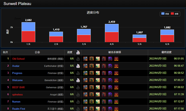 以上是WCL太阳井副本进度的最新数据。可以看出,世界上只有1682个团队成功地打开了太阳井。这些数据似乎很多,但与其他阶段相比,通关率很低。