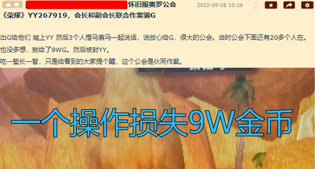 怀旧服玩家辛苦存金币私下交易被骗GM回应不在管辖范围