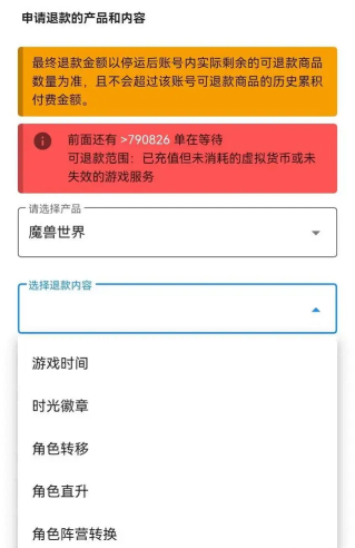 能退的要哪些?这个其实之前是有说过的,简单的就再说下魔兽世界,目前魔兽世界可退的内容主要是游戏时间、时光徽章、角色转移、角色直升以及角色换阵营五大类,其它暴雪游戏大家有玩的也可以登入退款界面选择相应的退款内容即可,可谓一目了然非常的简单明了。
