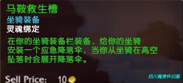 按照目前暴雪的说法这些坐骑的装备特效还会增加,8.2版本上线后会先增加3中特效装备,第一种就是马鞍救生装备,这个坐骑装备特效就是让玩家可以在高空坠落的时候打开滑翔伞并缓慢降落到地面。根据国外媒体的推测这件装备可以让工程学玩家进行制作,制作出来的成品可以进行拍卖行拍卖。