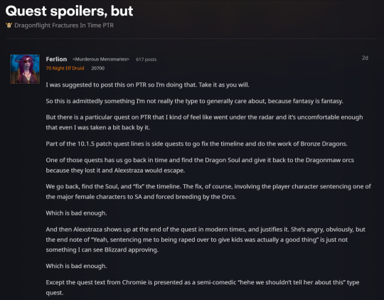 根据玩家的反馈,10.0新剧情的内容被认为过于恶心。剧情涉及的主题、情节和场景令玩家感到不适和厌恶。一些玩家指出剧情的描写过于暴力、恶心和不合适,违背了游戏本身的理念和氛围。