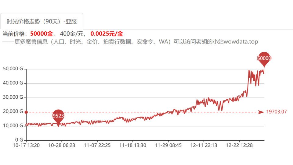 回顾怀旧服金币市场,去年3月份时光徽章价格仅为6000多金币,而如今这一数字已经超过了50000金币,涨幅高达数百%,形成了一场惊人的金币涨势。这一迅猛的变化引起了玩家们对游戏经济的关切,同时也揭示出工作室对游戏内货币流通的极大影响力。
