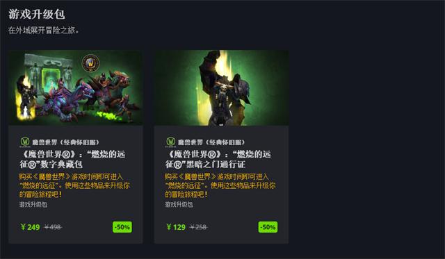 值得一提的是,从新版本开始到3月30日,燃烧的远征版本的数字收藏包和直升机服务都打了50%的折扣,这是非常好的。除了一个月的月卡,还有一个相位猎人坐骑和一个绿色相位猎人坐骑(非怀旧服可用),再加上一个黑暗的炉石和一个伊利丹路的虚拟玩具。