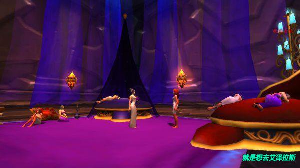 在《魔兽世界》T6团本暗堂里有一个特别的位置,还有许多英俊的人在去打败莎赫拉斯母时,血精灵,甚至魅魔聚集在一个叫做“欢愉花园”的地方,满地是模糊不清的粉红色,地面上铺着厚实的地毯,散着松软的抱枕和靠垫,这种风格完全不同于黑暗神殿的其他地方,那里没有阴冷的排水沟,严酷的军营,只有一群快乐的男女。