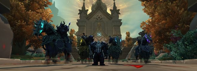 相较于军团再临时代的天启四骑士所骑乘的传统亡灵坐骑,新版的战马则来自暗影国度的噬渊。这些新版战马的模型取自9.0时代的“渊誓军马的缰绳”以及“堕落军马的缰绳”,其特点是自带发光特效,展现出更加恢弘、拉风的气势,与死亡骑士的风格相得益彰。