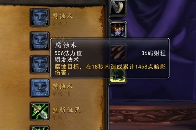 在以前的正式WLK版本中,只要痛苦术士能够确保上述输出循环术士,其DPS就非常可观。直到3.3版本,一个新的大型雕刻文本被添加到痛苦术士中,即一开始提到的快速枯萎雕刻文本,使术士能够真正锁定T0输出。这种雕刻可以影响腐蚀术士的快速添加。速度级别越高,腐蚀损伤跳得越快,整个过程中技能损伤的比例得到质的提高。