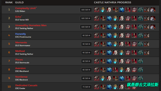 尽管国家服务器昨天才开通9.0的第一个赛季,但外国服务器的玩家已经进入了两天的土地开垦。 到目前为止,H组本纳斯里亚堡的困难使所有球员都措手不及,即使是世界上第一个行会极限总裁也不能直截了当地击败它。 极限在纳斯里亚堡赢得了世界上第一杀 第一组9.0版的纳斯里亚堡中共有10个首领,截至发布之时,世界上只有三个行会以H难度击败了大纳斯里亚。 。 世界上第一个杀人案是著名的极限公会,其次是Echo(方法重组公会)和无家可归的无家可归的人。