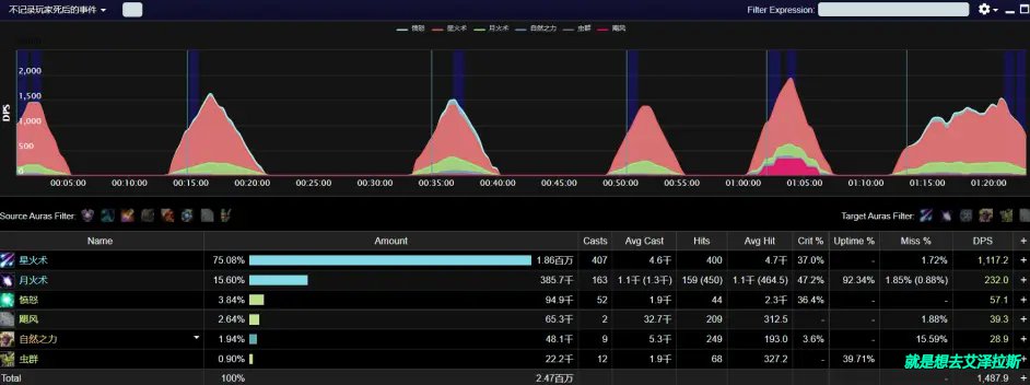 按照世界第一平衡德,来自于国服范沃森服务器的tendergirl输出数据计算,星火术占比为75%,那么5%的暴击提升可以获得3.8%的DPS提升;月火术占比为15%,原本hot持续时间为12秒,现在延长到了15秒,hot占月火术总伤害占比为2/3,那么2件套T6可以提升3/12*2/3*15%=2.5%的DPS提升。那么雷霆之心法衣的特效提升为3.8%+2.5%=6.3%。