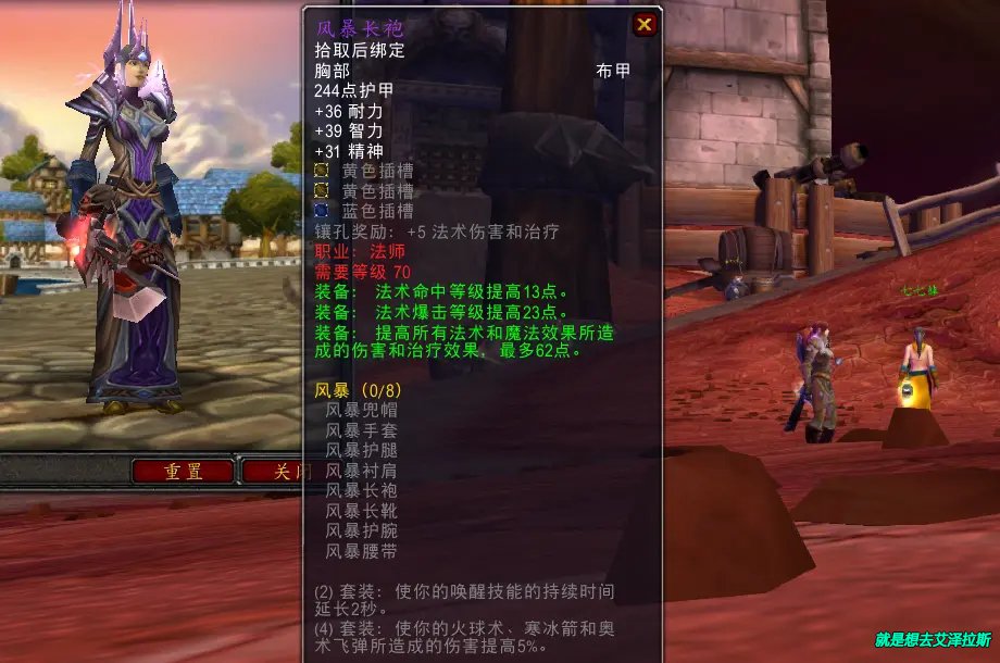 接着聊暴雪的亲儿子、法系DPS传统标杆法师。5件套除了肩膀是法师穿透+法术暴击的绿字组合,其他4件就是暴击+命中。套装属性方面2件套是提升唤醒时间2秒,4件套是提升火球术、寒冰箭和奥术飞弹5%的伤害,加成非常简单暴力。