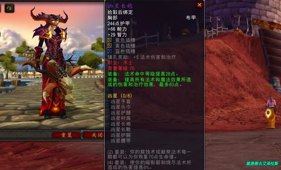 最后是术士,术士的T5套也是一言难尽,套装属性完全是鸡肋,直到P3术士的T6套才一举翻身,5个位置全部都有法术命中,一举改善了术士玩家缺命中的囧境,而且4T6的加成也是非常暴力,6%的暗影箭和烧尽加成下,一个煤球8000伤害也不是梦。不管是丢火球的还是丢煤球的术士,6%的主技能提升都能提供6%*85%=5%的总体DPS提升。