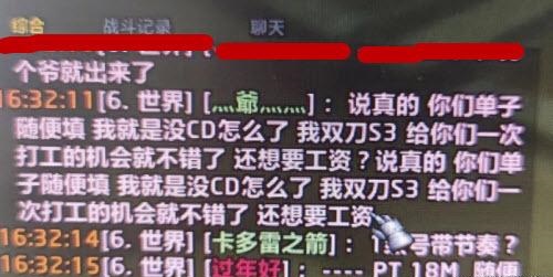 没想到玩家一点也不慌张,反而很嚣张一个拥有双刀并穿着双刀的人。S3.装备齐全的士兵自称钱不差,技术高,实力强。他在世界上开了个小号,和四个队友互相喷,说:你可以随意填写清单。我就是没有CD怎么了?我的双刀S3.给你一个工作的机会很好。你还想要工资吗?从这位玩家的话中不难看出,他CD直接白嫖,还欺骗队友包坐骑,完成后怪队友向他要钱,字里行间似乎说队友欠他这只羊,给你工作报恩的机会不快谢恩。